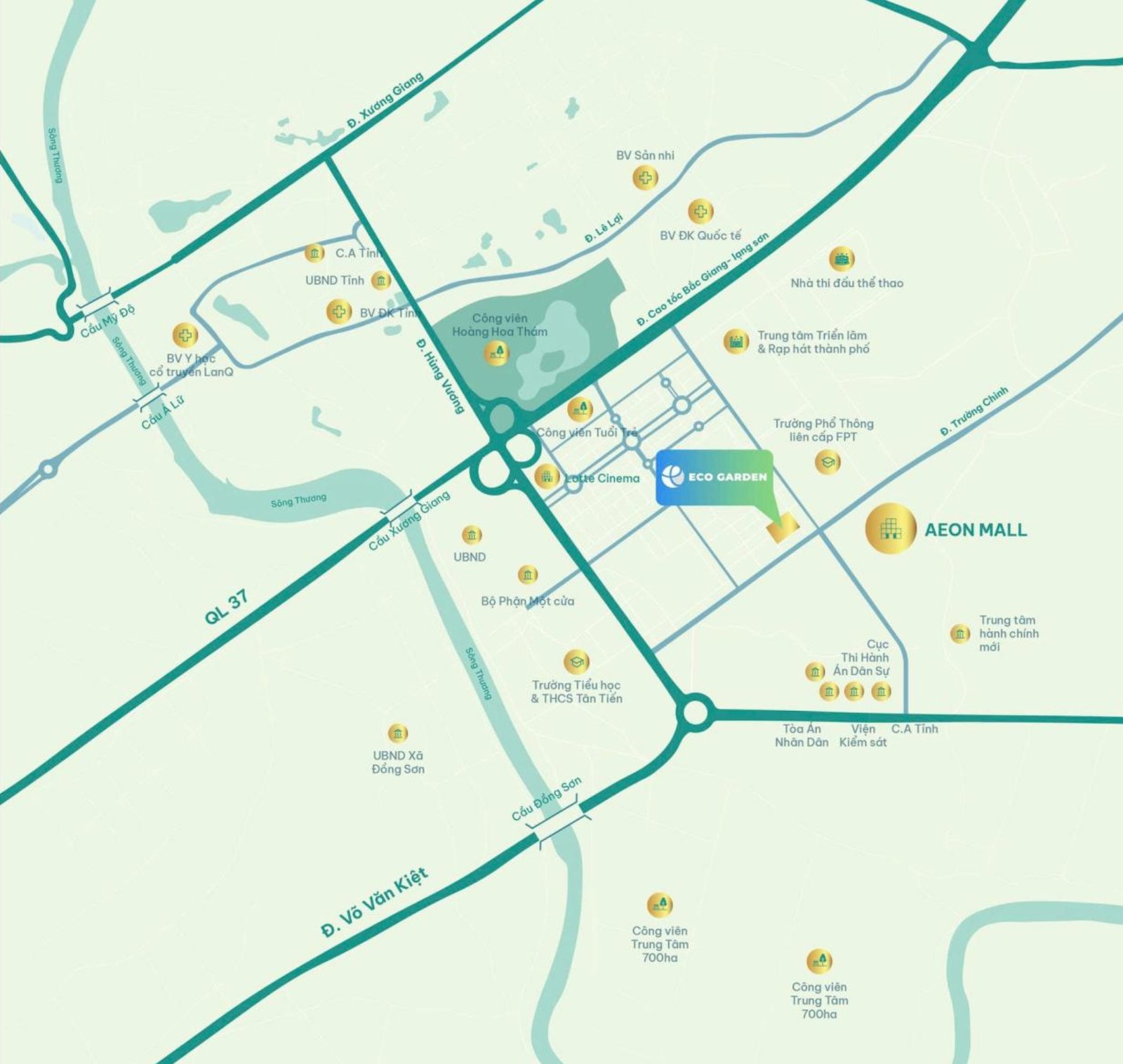 Eco Garden sở hữu vị trí chiến lược tại giao điểm Trường Chinh – Nguyễn Văn Linh, khu vực được xem là trục phát triển mới của TP. Bắc Giang, nơi tập trung trung tâm hành chính – kinh tế và cộng đồng cư dân tri thức.
