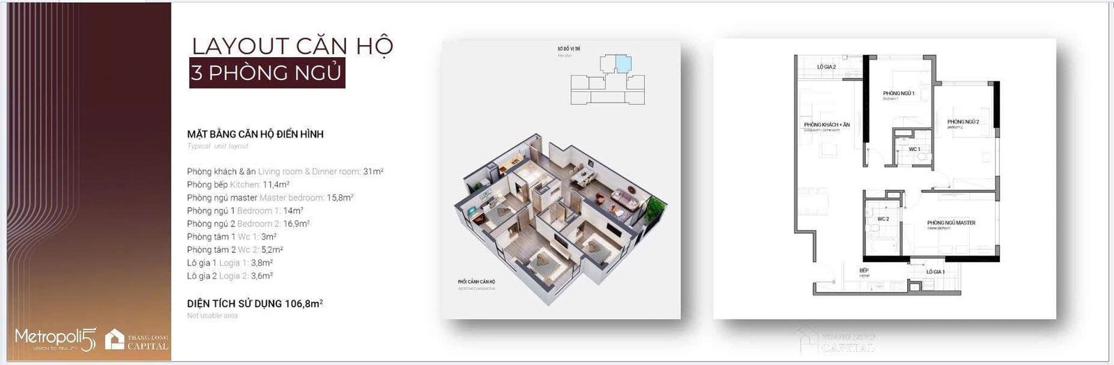 Căn hộ 3 phòng ngủ Metropoli5